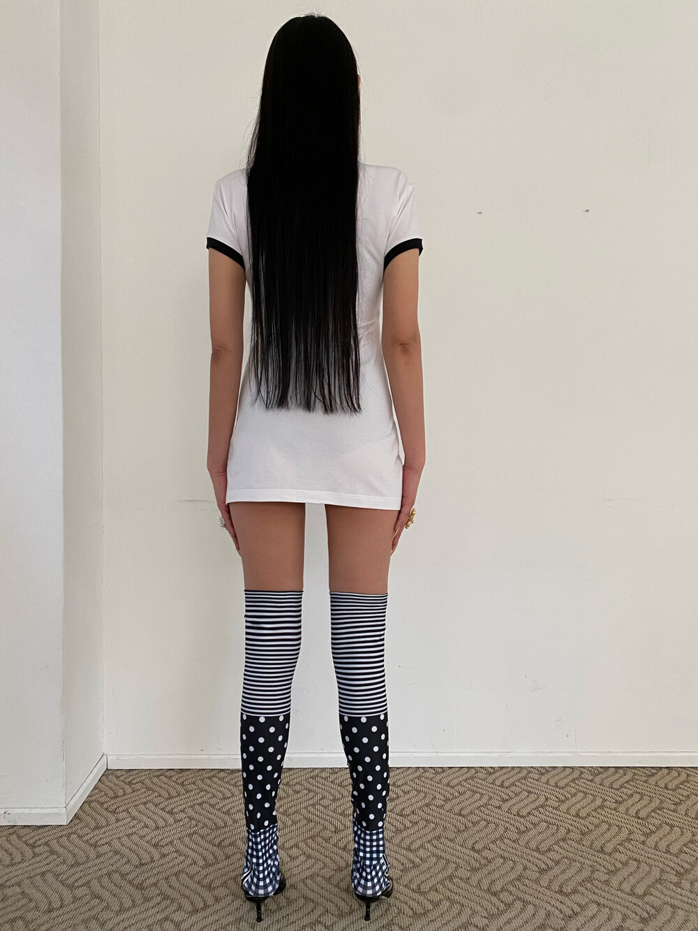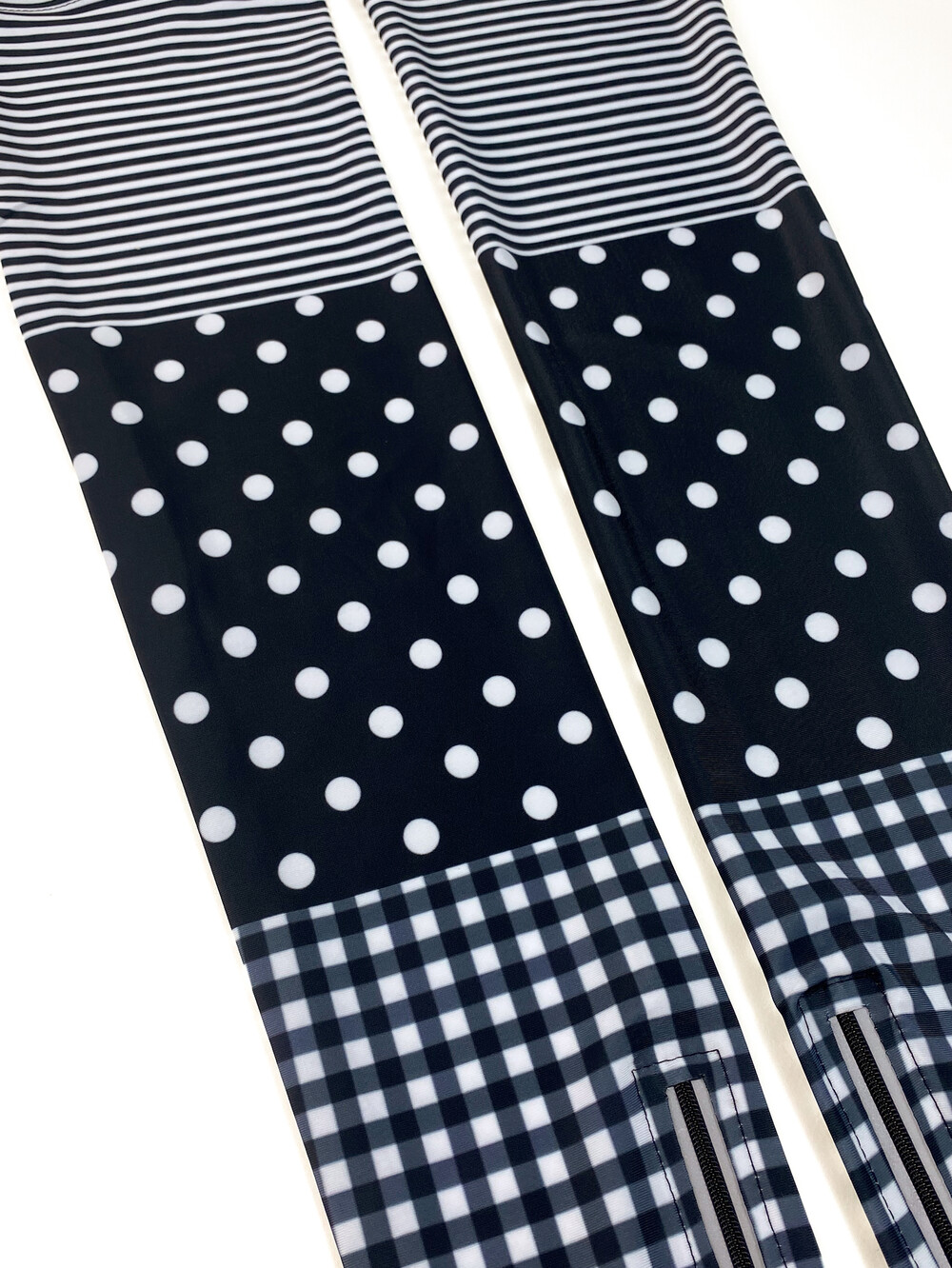 -신축성이 좋고 탄탄한 소재 -상단과 밑단 안쪽 미끄럼 방지 밴드 디테일 -하단 아웃심 지퍼로 플레어 연출 가능